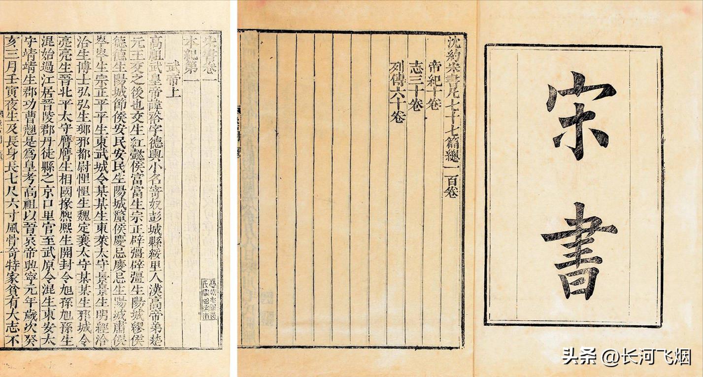 《宋书》的作者是南朝梁·沈约,《宋书》中的“志”是特色,篇幅竟然占据了全书的将近一半。一般各部史书只记载本朝的典章制度,不过因为《三国志》没有“志”,当时的《晋史》也没有“志”,于是《宋书》直接从三国时期的典章制度开始写起,直到本朝,开创了后世史书追溯、详载数代典制之先河。
