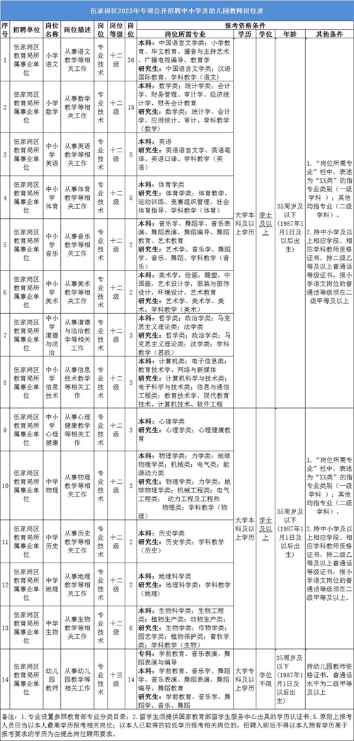 6.每个岗位的具体资格条件详见《伍家岗区2023年专项公开招聘中小学及幼儿园教师岗位表》。