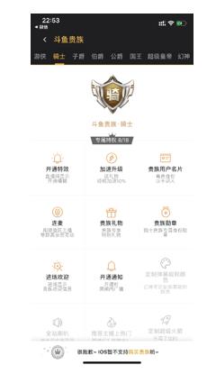 从图中可以看到,斗鱼明确表示IOS端的用户是不支持贵族购买功能的,对于使用苹果手机的客户是不友好的。