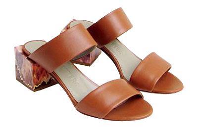 Gray Matters棕色皮革大理石跟凉鞋