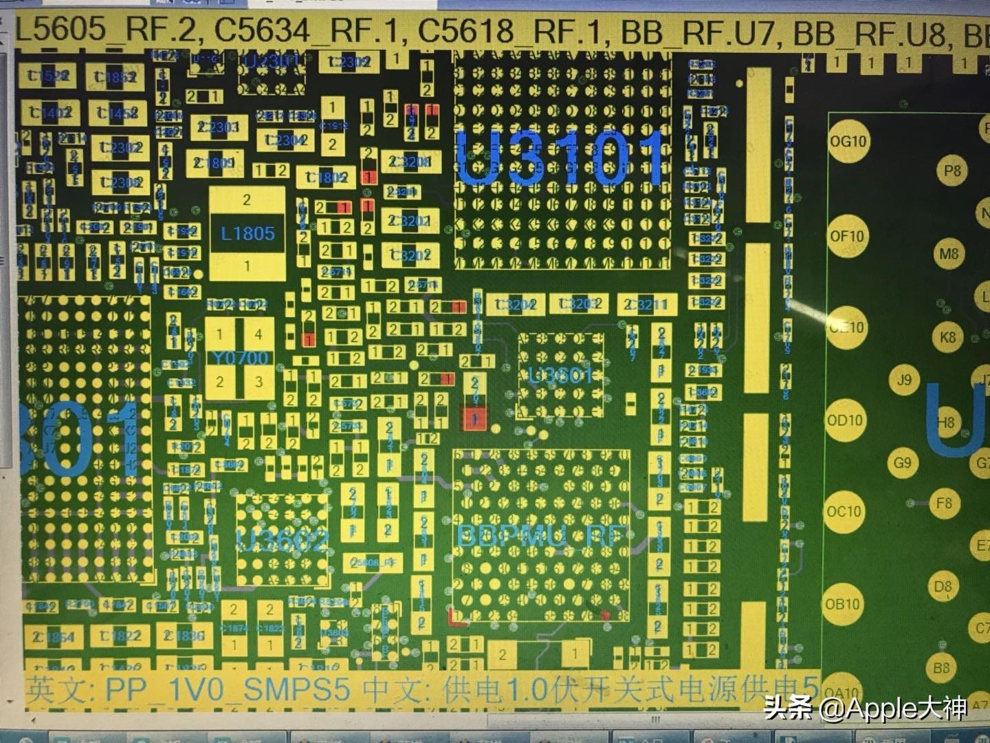 为测试基带这组PP_1V0_SMPS5 供电阻值被拉低或短路,我们反复的测试捕捉到了一些造成该故障的原因: