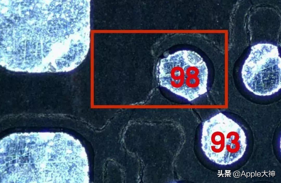 总结:iPhone7引起基带故障的原因是基带电源的93和98脚回路由于设计缺陷容易出现半开路情况,导致基带电源给基带cpu的1v供电变成4v以上,导致基带cpu工作不正常。维修方法:利用飞线的方式给93和98脚回路加固,杜绝半开路情况的出现。