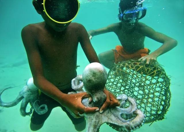 巴瑶族人在海底可谓是收放自如,畅通无阻,而且他们在没有任何辅助工具的前提下可以潜入水底30米甚至更深的海域。