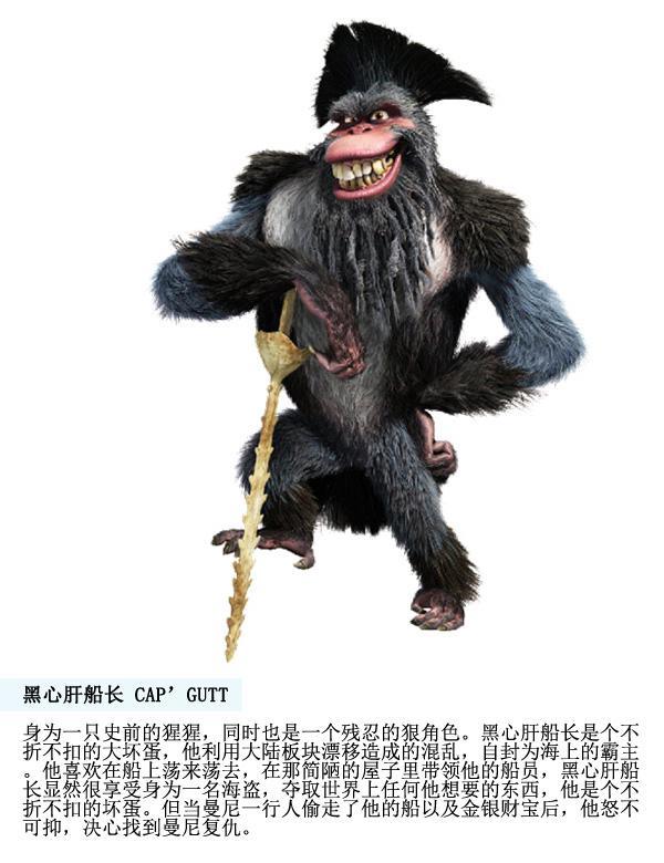 在动画电影《冰河世纪4》中的海盗船长Gutt就是以步氏巨猿为原型的,虽然样子有点像大猩猩,但没有大猩猩的犬齿,一嘴的大板牙。