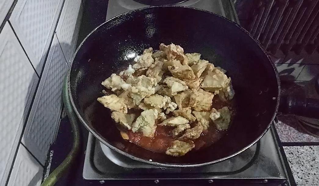 焦香美味酸甜咸香的油糊茄子,在家里也可以做,一次一盘吃不够