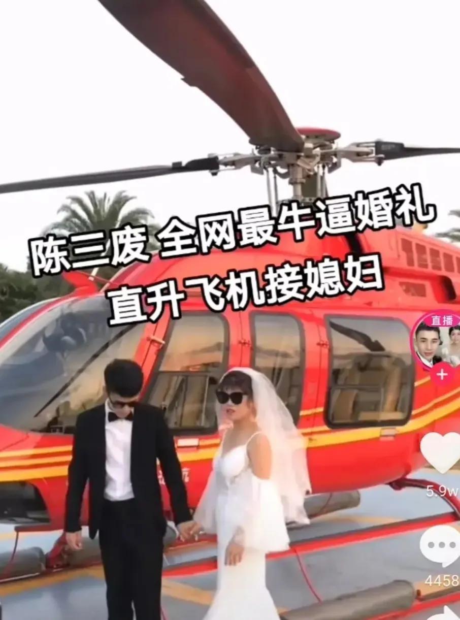 陈宇富还用直升飞机接媳妇,当地难得一见,轰动了整个广西。