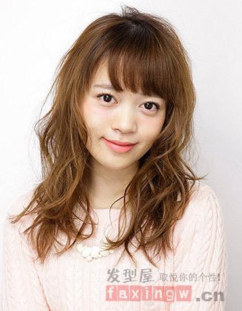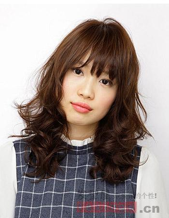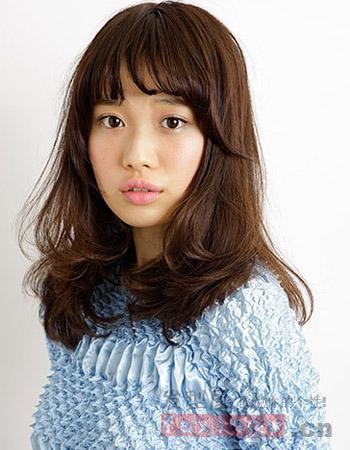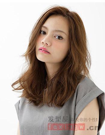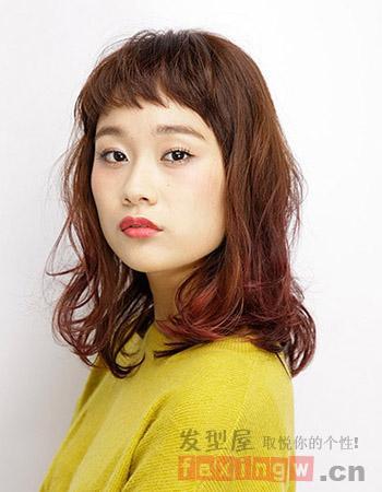 简单时尚的棕色染发设计同样可以增添女生的温柔气质风哦,再配合这种碎发形式的简单中长发烫发同样可以修饰女生圆润的脸型。