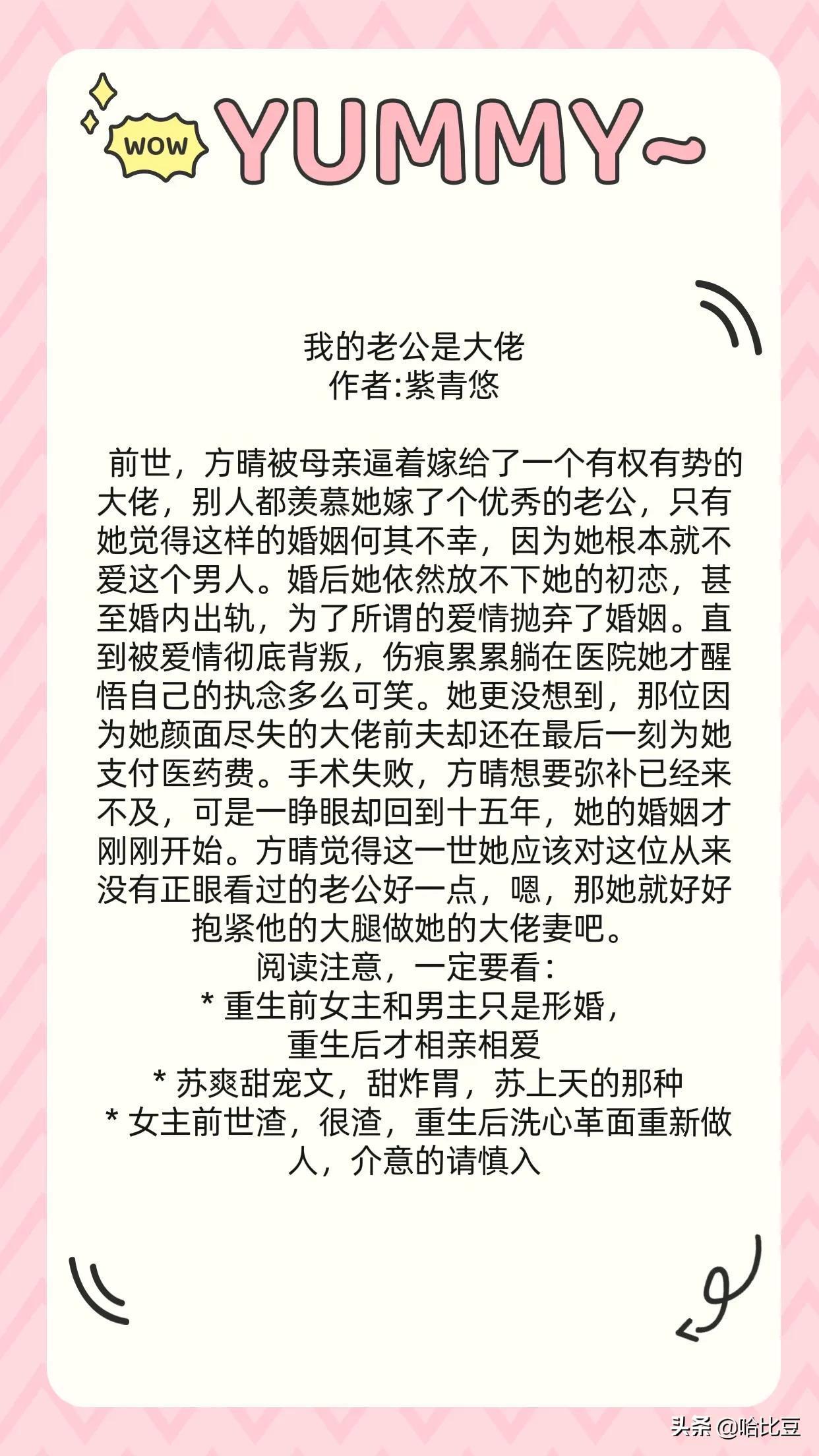 《我的老公是大佬》紫青悠 65章 重生前女主和男主只是形婚,重生后才相亲相爱。
