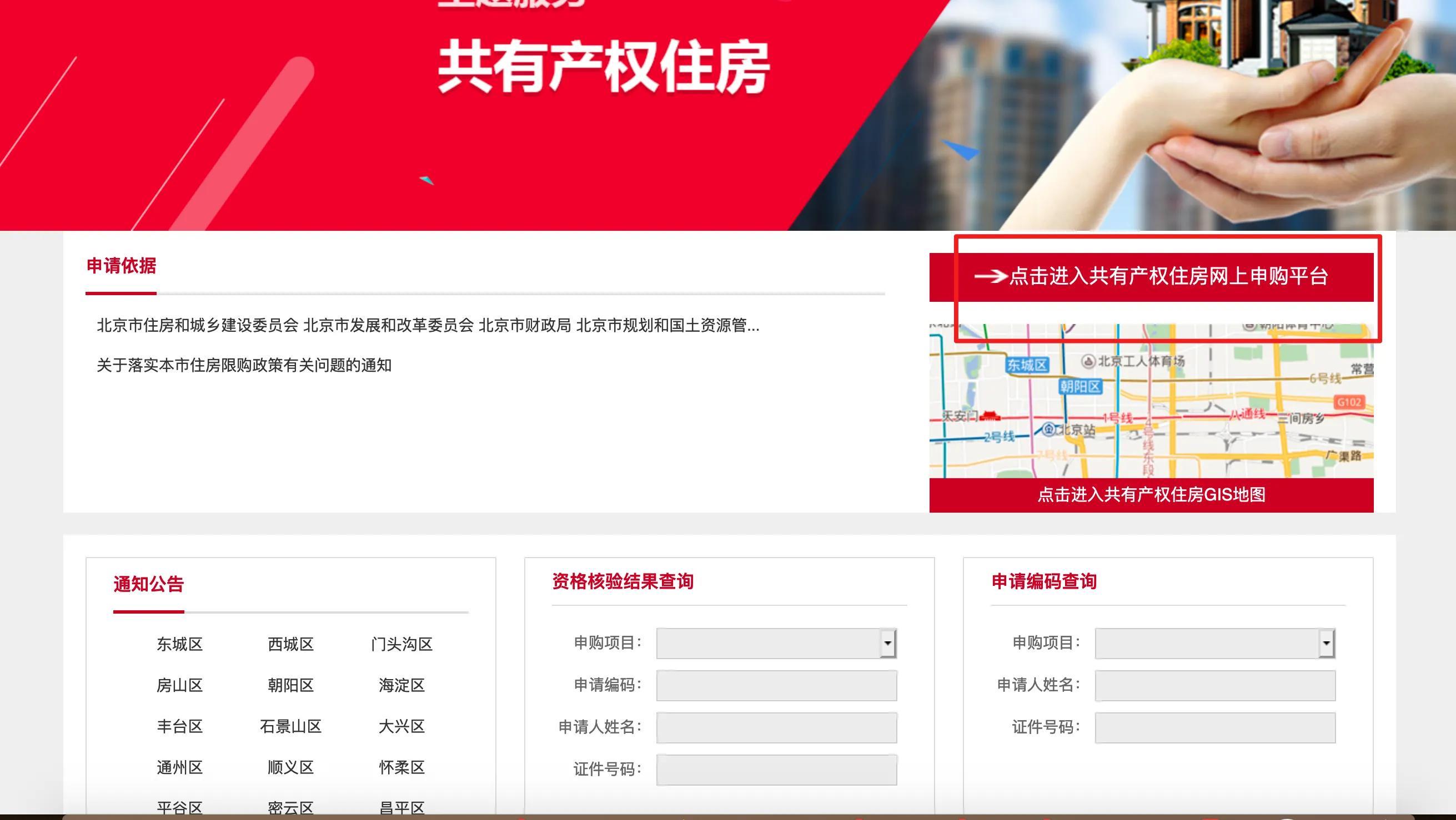 点击“进入共有产权房住房网上申购平台”进入申购页面,如下图