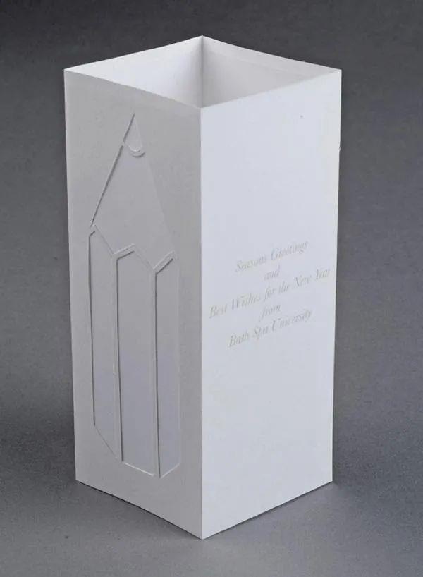 为艺术与设计学院设计的圣诞贺卡。该设计使得可以对卡片进行扁平包装,该卡片可以通过邮递方式交付,并且一旦打开就可以折叠成灯笼。