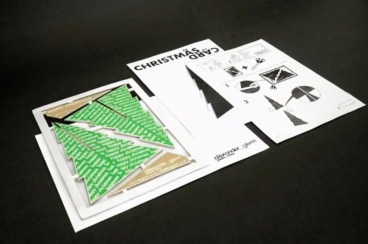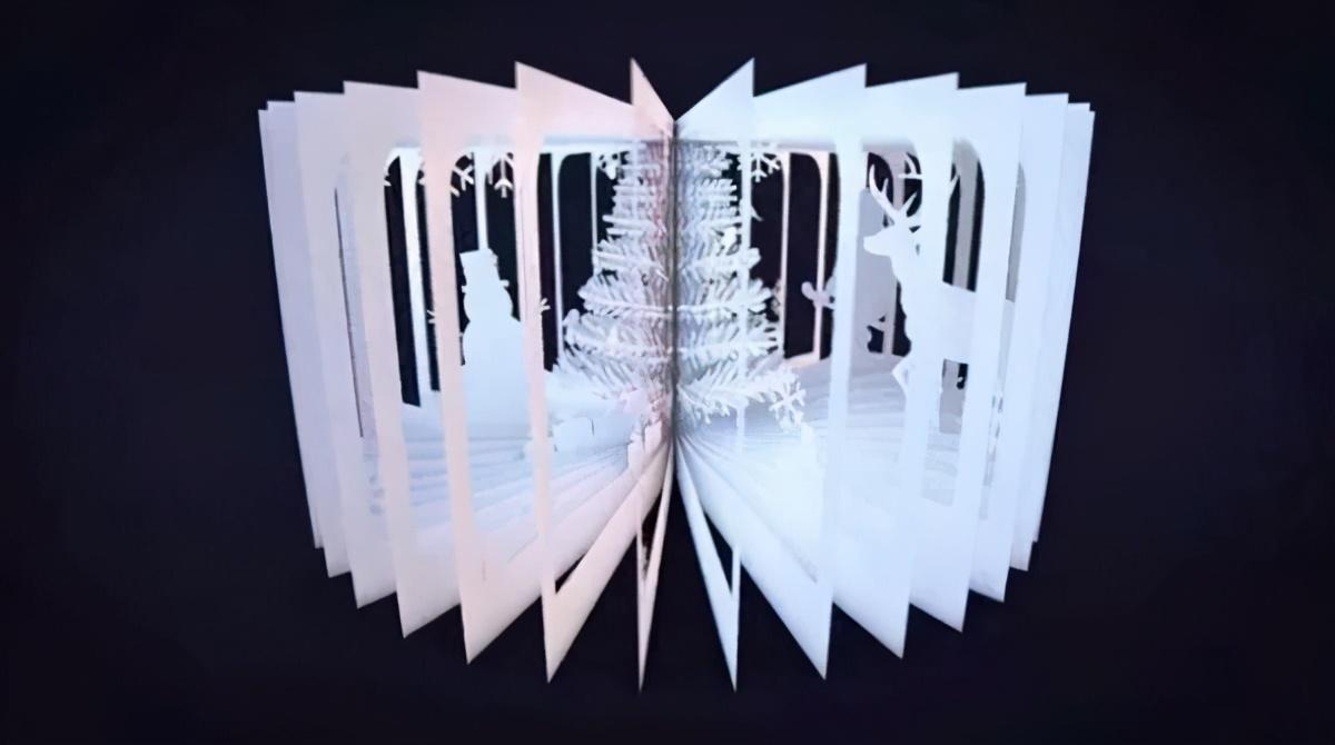 精美的三维圣诞贺卡:将其从信封中取出时,可以折叠成可以独立放置的三维图书。
