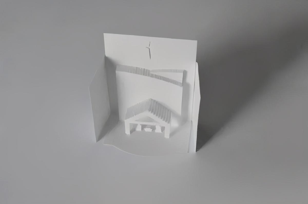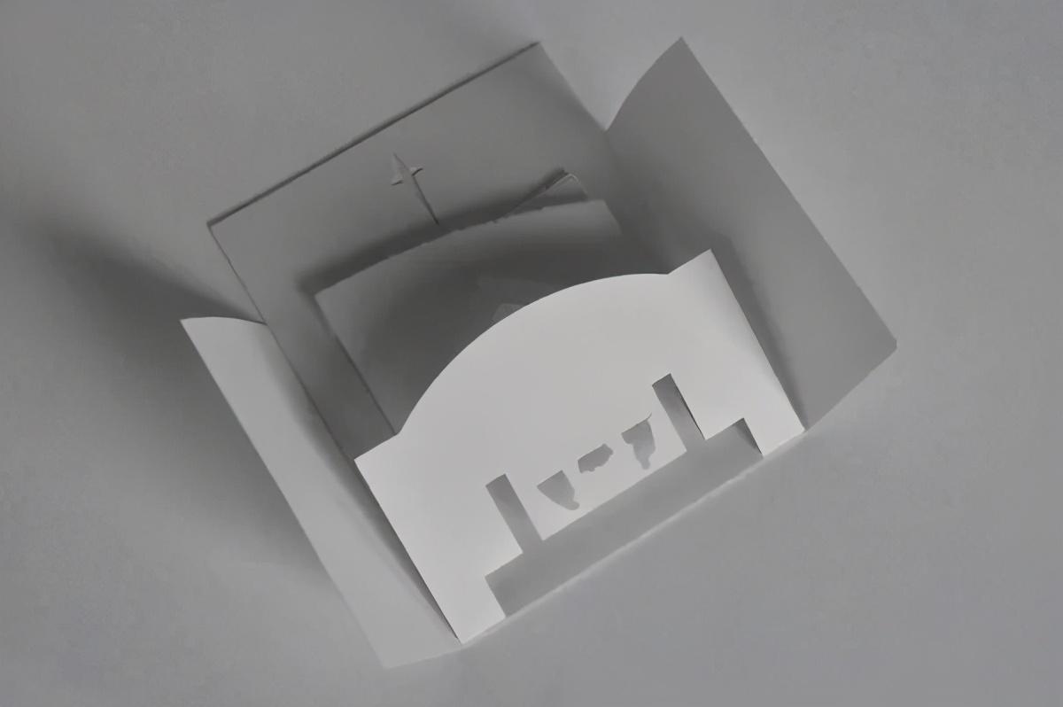 折纸弹出式圣诞贺卡,描绘了耶稣降生的场景。