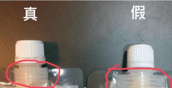 下图为正品的瓶口工艺,颈部溢出口位置就不多说了,这次大家注意盖子的做工,真的盖子整体标准,盖子上面的竖条笔直,关键的点还有盖子下沿的那圈防开启预留限位圈,分别是一凸起小条、一小圆点、一斜口小条这样排列的,文字不好理解的话大家对照看图。
