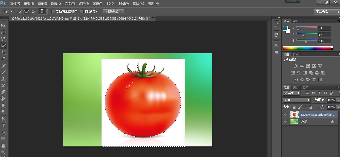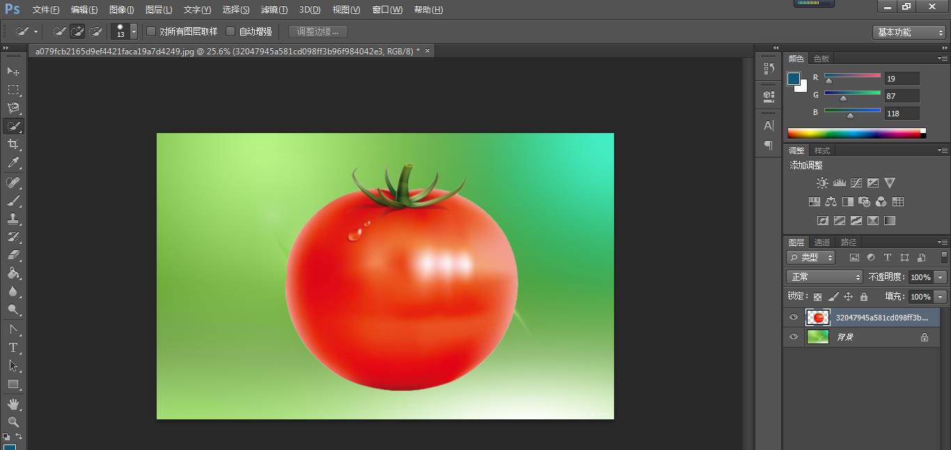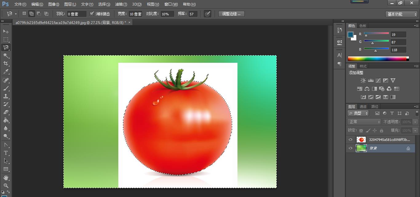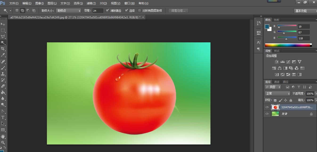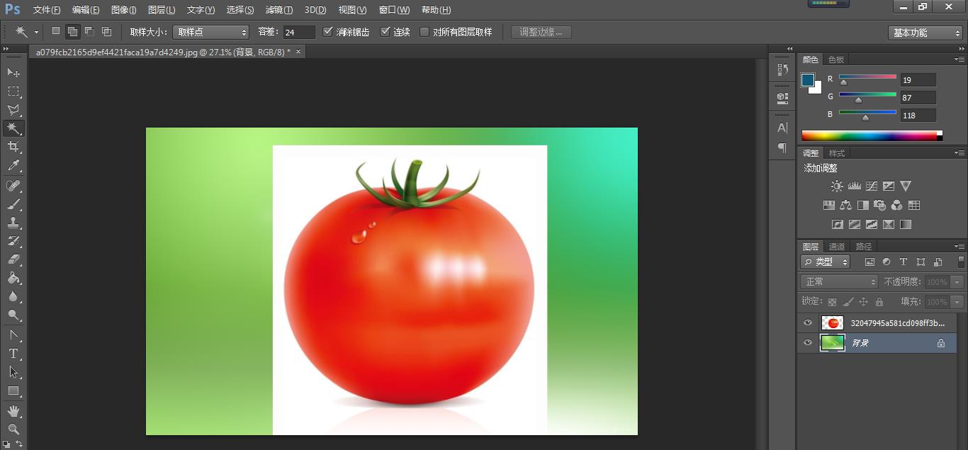 第一种方法:魔棒抠图法(使用魔棒抠图一般都是主体与背景有明显边界的,就如下图的番茄与白色的背景)