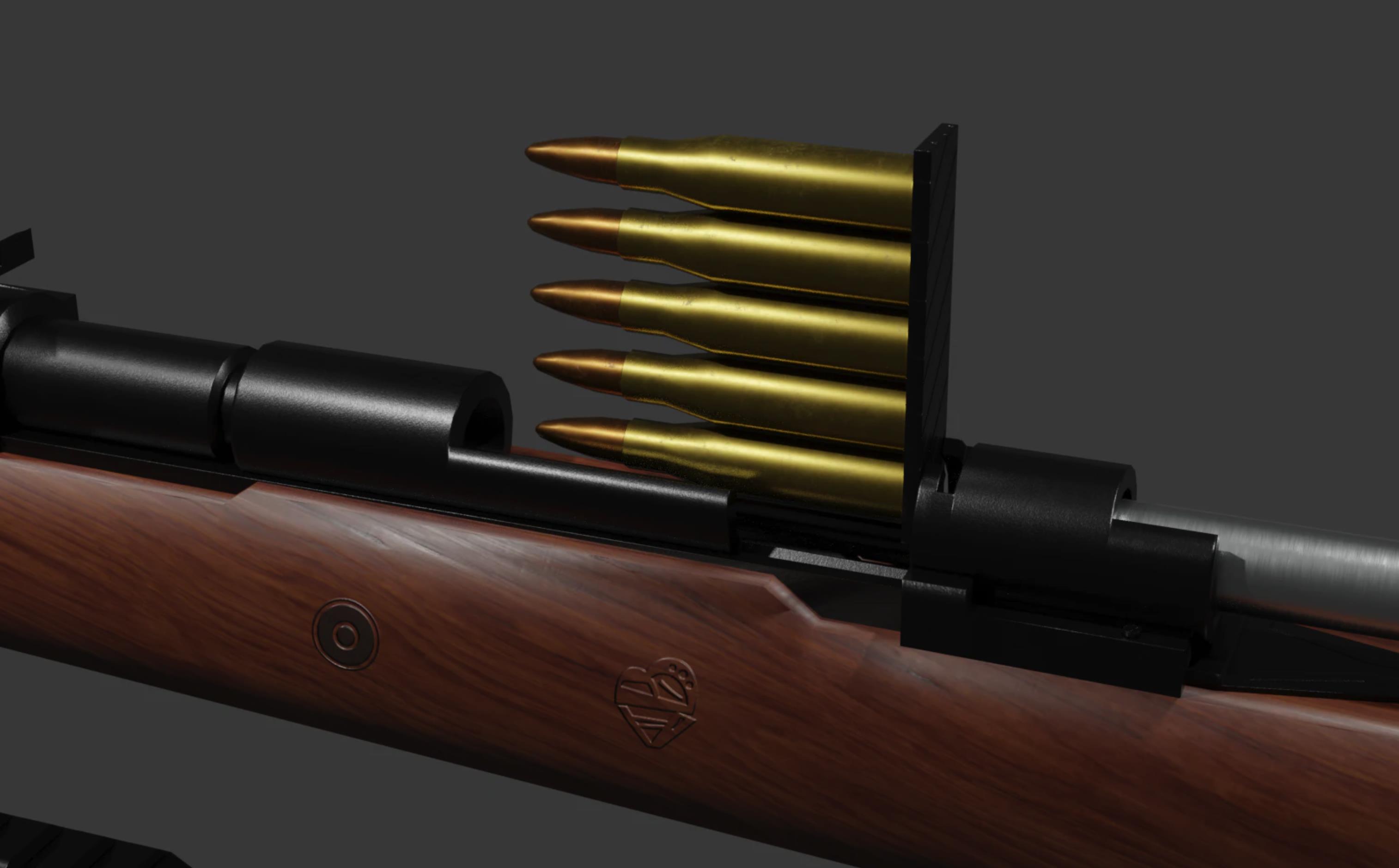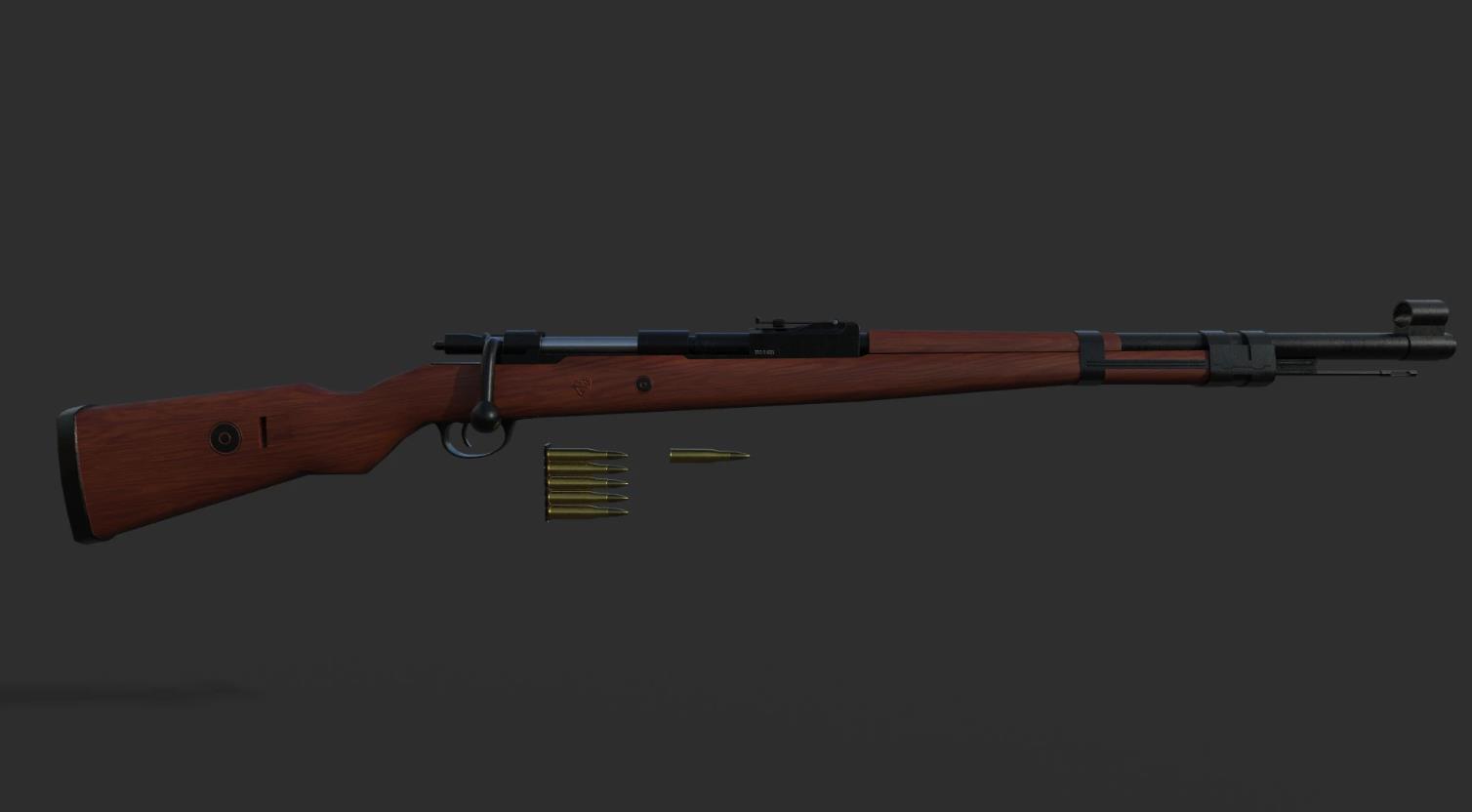 kar98k步枪属于单发步枪,使用弹药7.62毫米毛瑟步枪弹,全枪长1112毫米,枪管长60厘米,全枪总共重3.9千克。最大的射程是800米,弹匣供弹,一个弹匣容纳5发子弹。