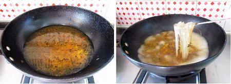 酸辣粉可根据自己的口味来调味,也可在炒至酸菜的同时加入肉末一起煸炒,味道更香。