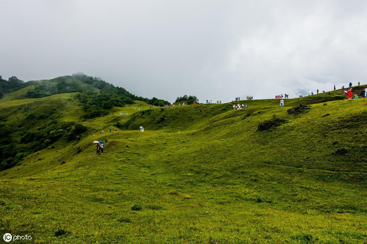 到了半山腰就要自己走了,落雨路不好走,要防滑鞋才能见步如飞,大概40分钟哦,有指示牌,爬完最后一梯,霍然开朗,草坪坝坝,牛多,牛翔也多,请注意脚下,有卖烧烤的,水6元一瓶,什么手机都无信号。