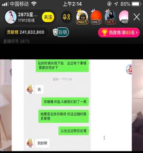 前段时间苏珊珊被封禁了一星期,出来后各种矛头都指向之前乱斗发生口角的星妹妹,星妹妹这边到没什么解释,任由苏珊珊和她家大哥苏小凡猜测,不过也没猜出个所以然来,据说是官方不透露到底谁封的。