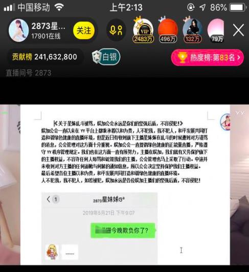 昨日星妹妹直播时转播了与公会管理的对话,算是对这事的解释,原来是娱加公会的管理听说星妹妹被苏珊珊攻击,看了回放后举报的苏珊珊。星妹妹当时还有求情,觉得不是什么大事,但公会为了保护主播,就走了举报程序。