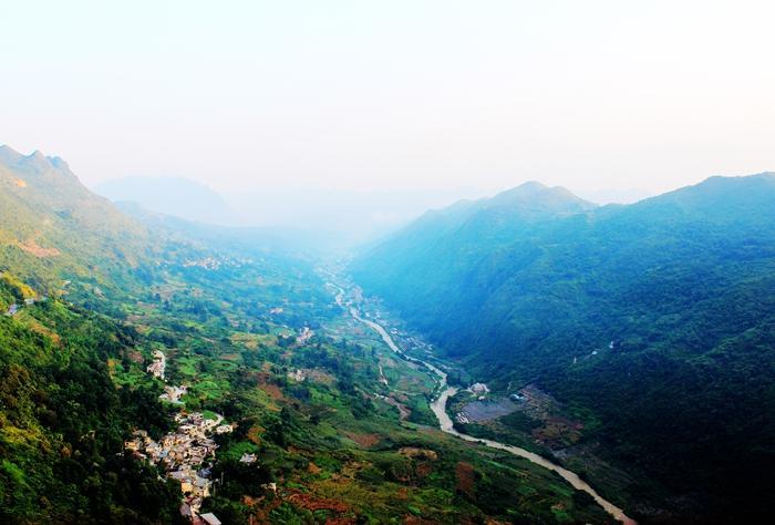 桥下就是丛山峻岭与河谷
