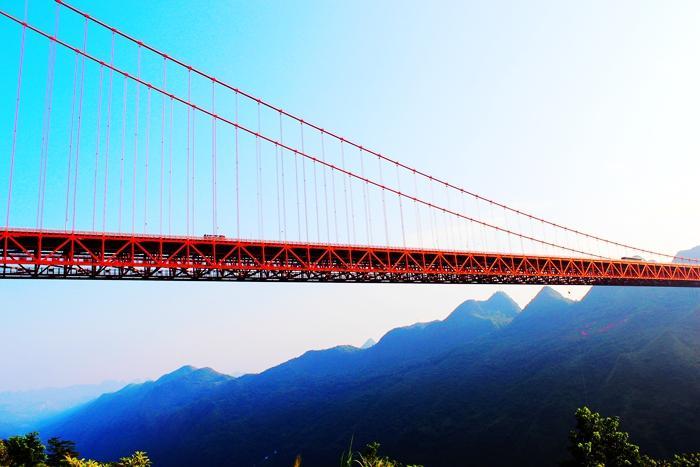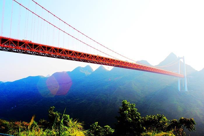 坝陵河大桥堪称世界大桥的第10高桥,全长2233米,主跨1088米,桥高370米,投资15亿,是沪昆高速公路的路经桥段。
