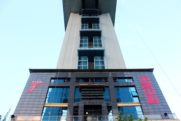 我们到达时,已是夕阳即将西下之时,大家乘坐电梯登上桥梁370米的高度。虽没有蹦极,但还是有胆大的,从370米的高度跨越桥梁,饱览大桥的威武壮观。