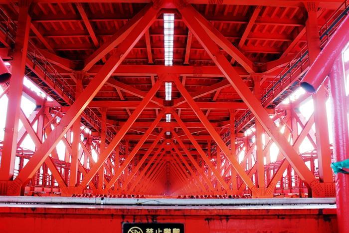 桥体下方完全是钢板连接 三角形支架结构