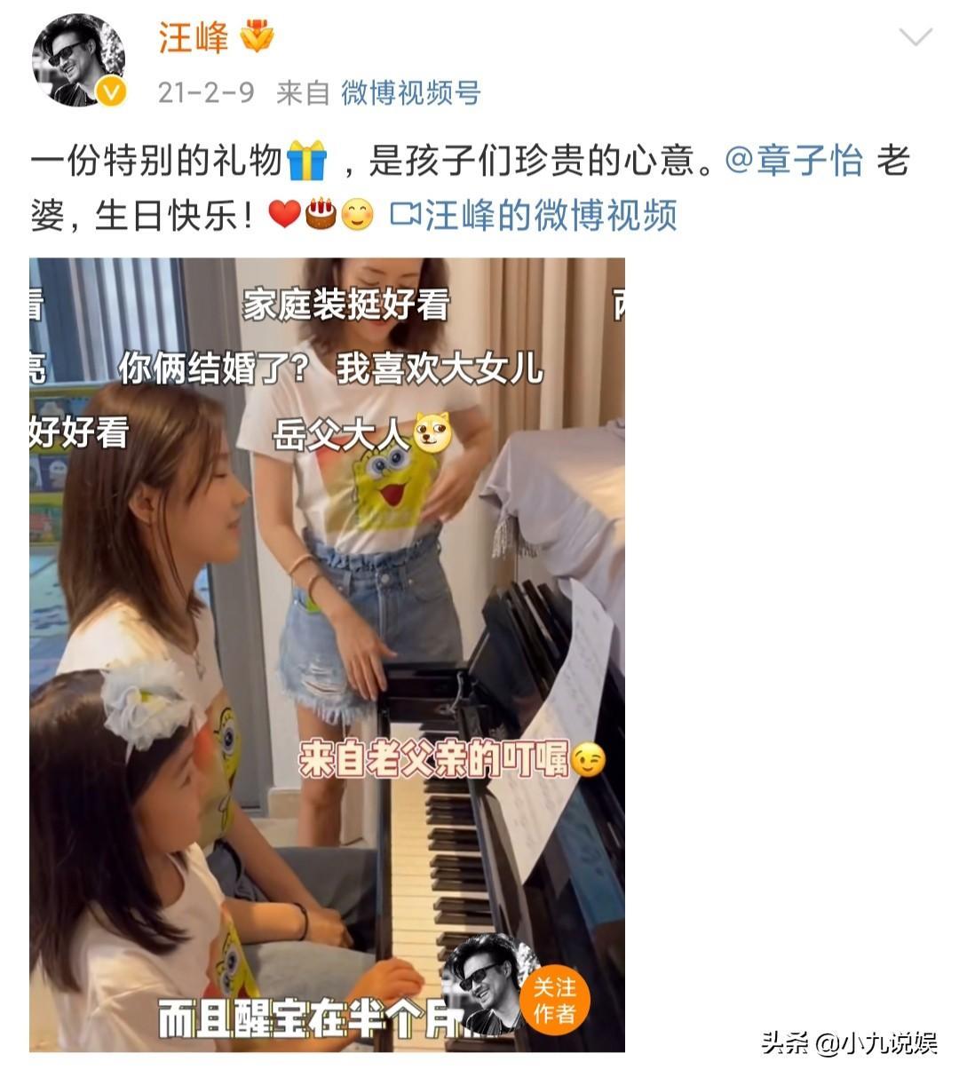 汪峰和章子怡在一起后,每年章子怡过生日汪峰都会为她送上祝福。21年章子怡的生日,孩子们给她准备了一份特别的礼物,一首名为《天空之城》的钢琴曲。在过生日的半个月前,汪峰便带着女儿醒醒和小苹果一起练这首钢琴曲。这首曲子即是惊喜,也是感动,在这个特别的日子里,让章子怡感受父女的浪漫和对她炽热的爱。
