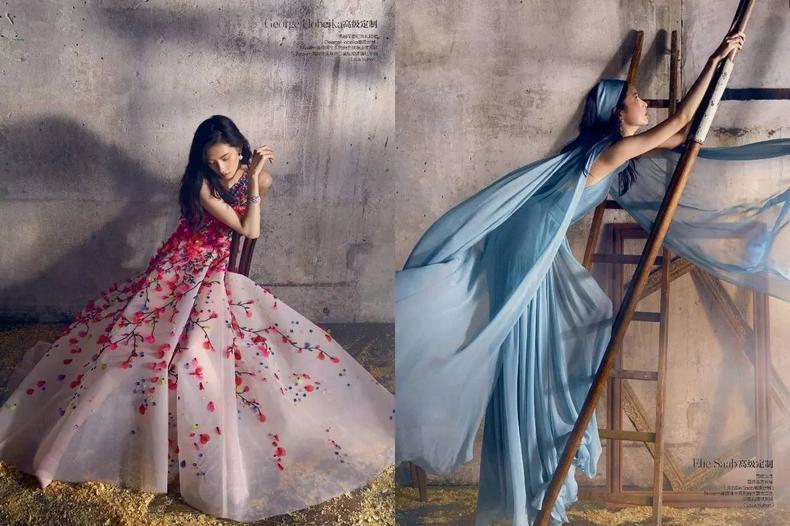 她曾为ELLE的4月刊拍过“旖梦觉醒Sheer Class”高级定制主题大片,仿佛置身在仙境里。