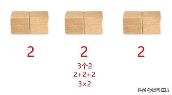 比如像孩子提问有两组积木,每组2个,那总数量怎么表达呢?三组积木,每组2个,又该怎么表达呢?