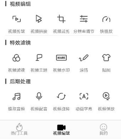 4、进入视频编辑,都是一些常用视频编辑工具: