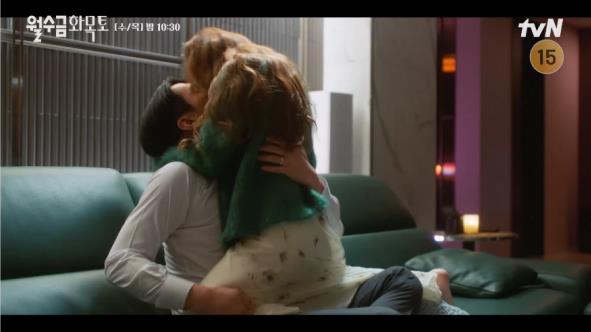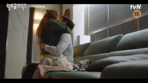 剧中朴敏英与高庚杓确认了彼此的心意后,在沙发上演绎了非常激情的吻戏,特别是高庚杓在接吻过程中还将朴敏英抱着坐在了自己的大腿上,这一名场面让无数观众疯狂心动。