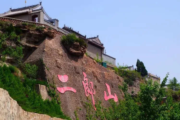 二郎山位于陕西省神木城西五百米的窟野河与芹河交汇处,因山上有二郎庙而得名。另相传明朝时,二郎山每逢山洪暴发,其边上的窟野河水便会冲垮大量的农田,当地百姓便在此山上塑起二郎神像,祈求神灵的庇佑保护,因此而得名。