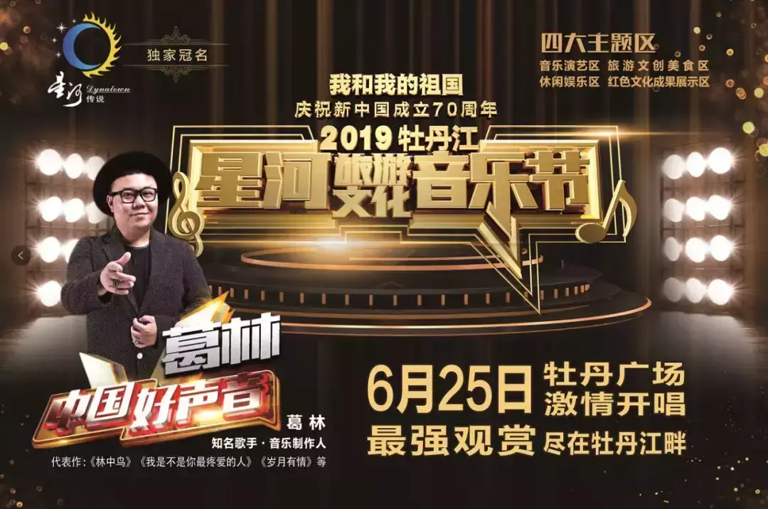 今晚19:00,我和我的祖国-中国牡丹江·星河旅游文化音乐节将在牡丹广场激情开唱。
