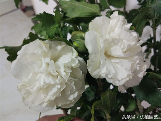 优植园艺:白色重瓣木槿,看一眼就会爱上它,好看可食用