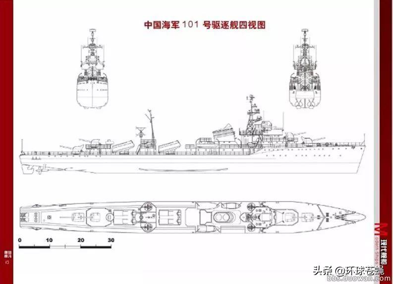 ▲鞍山号驱逐舰的四方面平面图
