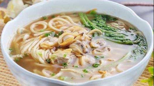 大连蚬子面是大连的特色海鲜面食,也是大连人气旺的特色小吃。用当地上好的蚬子、鲜嫩新鲜的肉芸豆、滑嫩的鸡蛋手擀面做成。大连的蚬子,被很多大连人认为是最鲜的一种海鲜,超过一切海鲜,名列榜首。在大连,蚬子面可是咱老百姓餐桌上最普通的一道主食面条。蚬子面有两种,家常一般做“小白菜蚬子面”,而饭店多是“芸豆蚬子面”,这两种都很好吃。