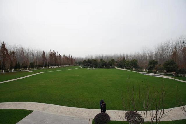 地处南北交界的合肥,十二月的寒风丝毫不逊色北方,即便在这么寒冷的天气下,园区中还是随处可见观赏的游人。园区的杨树林早已掉光了叶子,光秃的枝干相互簇拥,看上去反而十分“稠密”,园中央的大草坪郁郁葱葱,为萧瑟冬日平添一股春色。