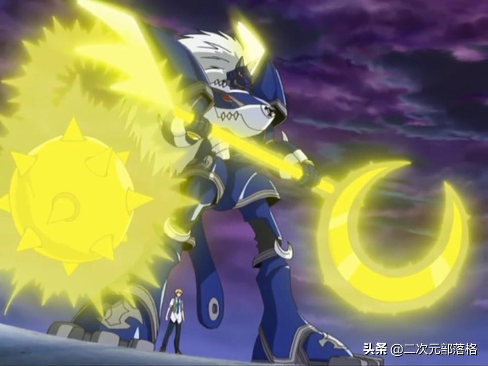 第二只就是幻影加奥加兽爆裂形态,这只也是出场即巅峰的数码兽,一出场的时候就是面对皇家骑士团的剑皇兽,虽然也是不出意外的被暴打一顿,但最后托马在想要保护自己妹妹的信念下解锁了自己的爆裂模式,于是幻影加奥加兽爆裂形态登场。