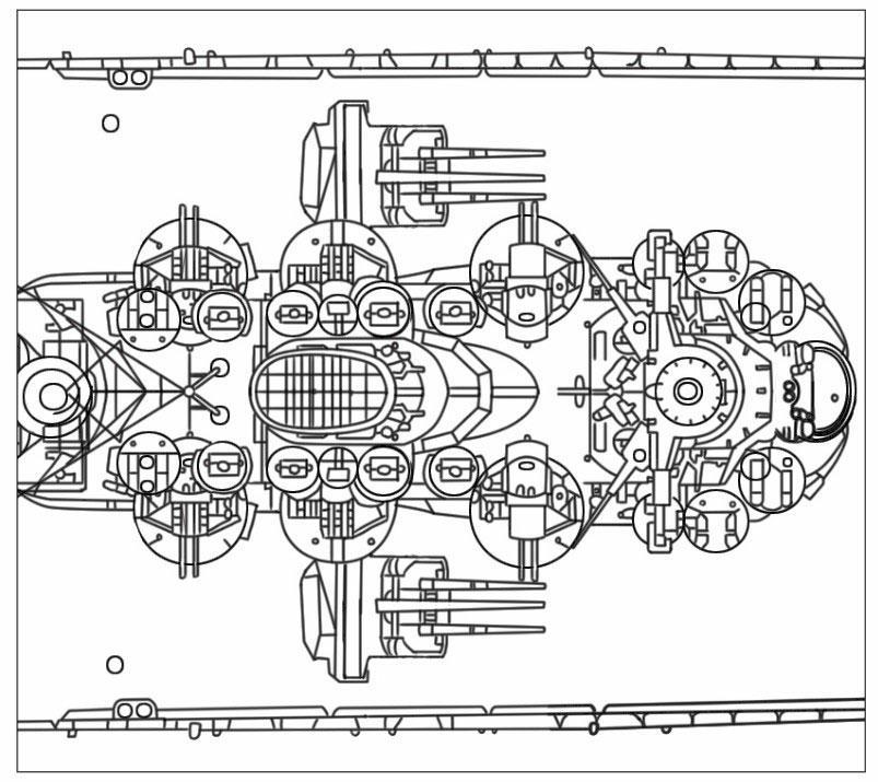 3连装155mm舰炮以及127mm双联装高射炮顶视图
