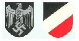 四、在帽子上如何区分国防军与党卫军;党卫军帽子上印有“帝国鹰”或“纳粹鹰”。国防军帽子上会印有“普鲁士鹰”。空军伞兵帽子上会印有展翅的“空军鹰”。