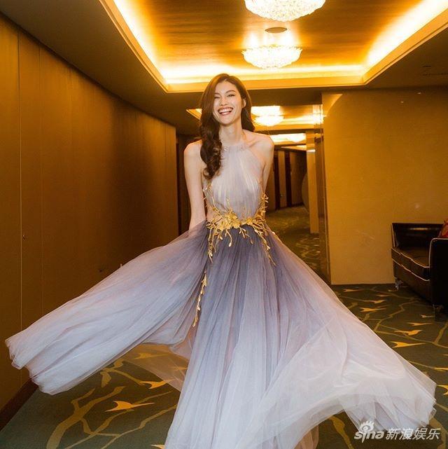 何穗露背纱裙美出天际,鼻子整容超自然的何仙姑难怪是维密亲闺女