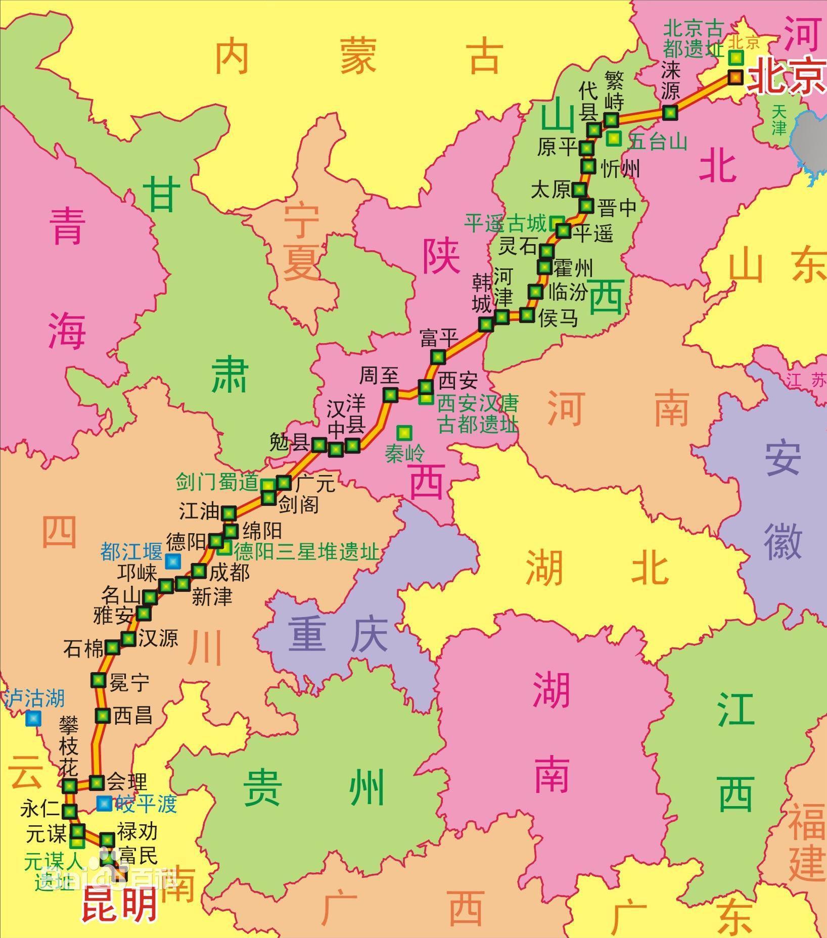 京昆线,国道G108,起点为北京复兴门,终点为云南昆明