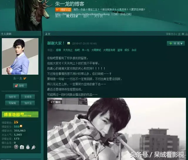 对于自己上镜不多,还在自己的博客里面安慰粉丝
