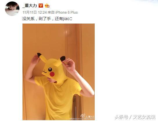 双十一当天,董力竟然和关晓彤都发了皮卡丘,关晓彤00:18微博的是发的拆快递的喜悦,抱着皮卡丘,董力12:24穿着皮卡丘。光棍节,董力是要搞事情,暗送秋波吗?!