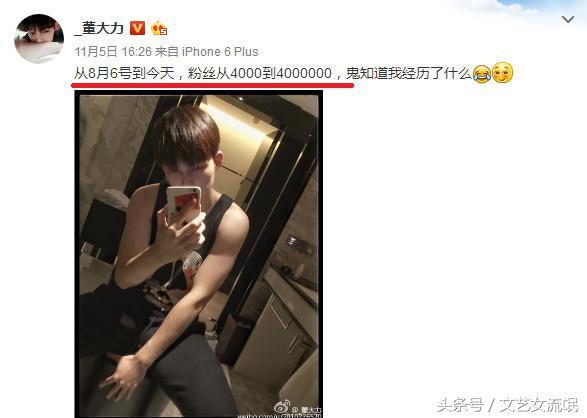 董力的微博粉丝从4000增长达到4000000,也就是增长了1000倍?