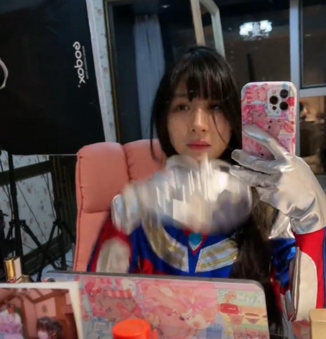 蔡萝莉也经常露脸直播,滤镜加持下,眼睛大大的,脸小小的,非常可爱。