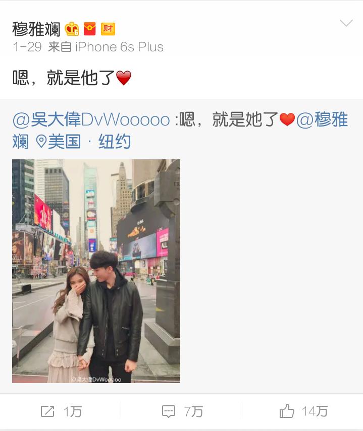 吴大伟和穆雅斓两人高调的公开已经让他们在热搜待了好几天了。