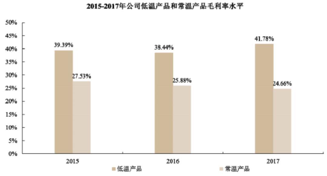 由于低温奶产品的毛利率显著高于常温奶产品,在保持整体规模增长、低温奶产品销售收入的占比持续提高的背景下,新希望乳业的盈利水平也大幅提高。 综合毛利由2015年的12.61亿元提升到2017年的15.35亿元。