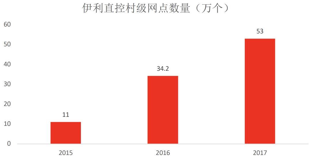 从2006年的“织网计划”到2012年的“二次织网”,伊利对国内三四线及以下地区展现出越来越强的掌控力,根据公司的年报披露,截止2017年底,伊利直控村级网点近53万家,公司营业收入的55%来自县城以以下地区。